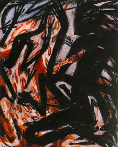 Photo : © Helmut Rieger, Horngrabenjäger, 1986/87, technique mixte sur film transparent, 100 x 80 cm © Galerie Van de Loo