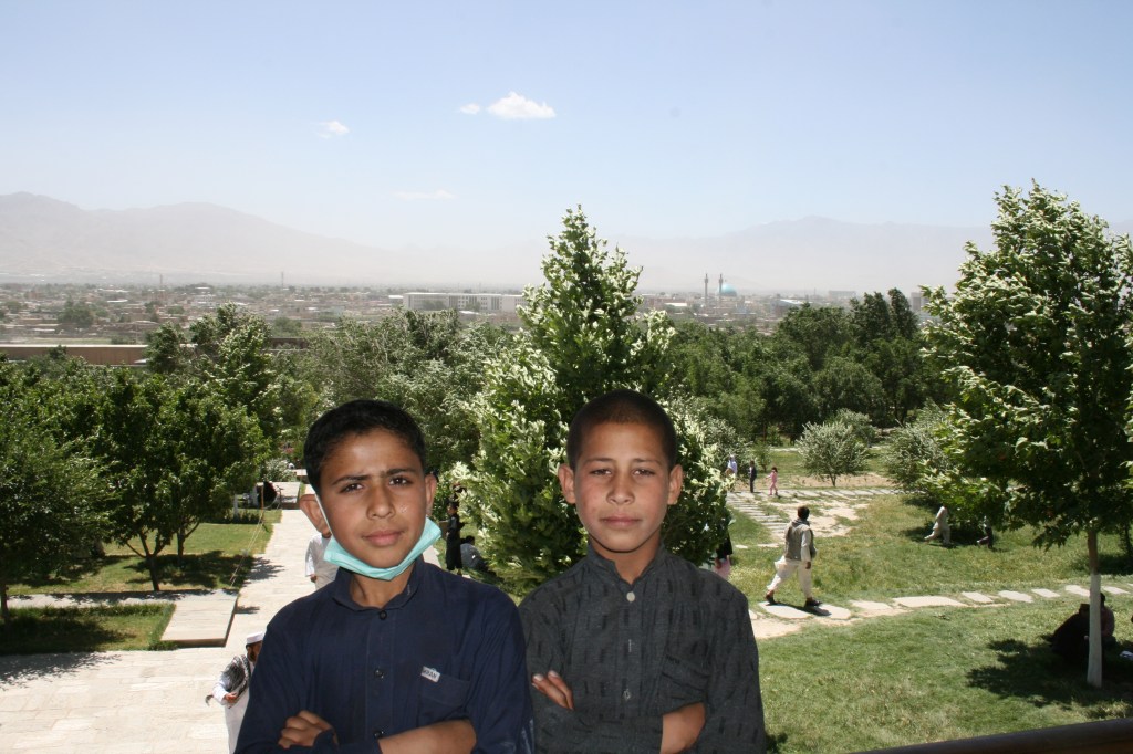Au « Bagh-e Babur » (jardin de Babur), parc où est enterré le fondateur de l’empire Moghol ‘Babur’, ces deux frères (jumeaux ?) posent devant mon objectif, un peu dubitatifs sur mes intentions. Déjà le masque, mais ici plus pour la poussière que pour le Covid.