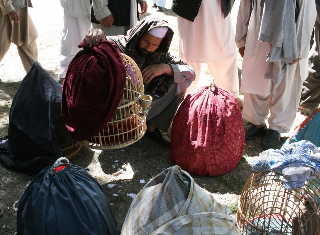 Une des grandes activités du week-end : le combat de perdrix. Ça fait bien moins sérieux que des coqs et elles ont plus l’air de se bécoter que de se battre.
