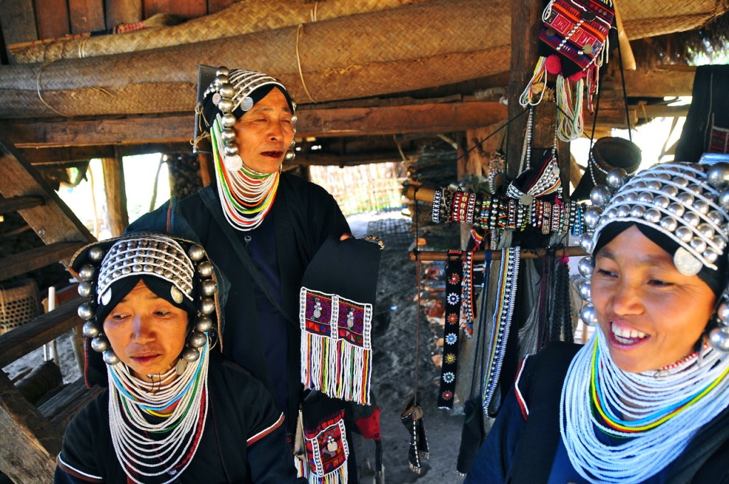 Les Akha (on les appelle aussi Kaws et en Chine Hani) sont environ 500 000 et se répartissent sur quatre pays : la Chine (Yunnan), la Birmanie, le Laos et la Thaïlande dans les montagnes et les zones frontières de ces différents pays. Ce sont des semi nomades qui pratiquent la culture sur brulis et qui migrent lorsque la terre devient moins fertile. Ils cultivent du riz, du piment, du soja et du pavot, principalement, qu’on transforme en opium. Ils élèvent des porcs, des volailles et des buffles. Ils pratiquent également la chasse et la pêche.