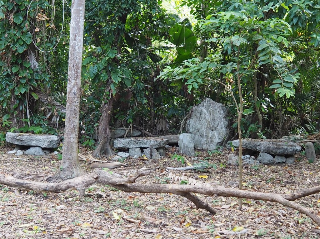 Les places de danse actuelles en gardent trace : pierres dressées comme marqueurs généalogiques, dolmens funéraires, plates-formes de corail servant de tables sacrificielles pour les tueries de cochons, caves au creux des banians où se déroulaient les rites anthropophagiques …