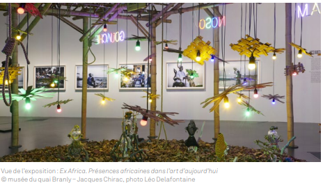 «  Le musée du quai Branly–Jacques Chirac dévoilera à cette occasion l’exposition  Ex Africa qui met en regard plus de 150 œuvres d’artistes contemporains de toutes générations et origines, pour décrypter les relations qui unissent la scène artistique actuelle et les arts africains anciens depuis la fin du 20e siècle. De Jean-Michel Basquiat à Chéri Samba, en passant par ORLAN, Annette Messager, Hervé di Rosa, Kader Attia ou encore Romuald Hazoumè, ce vernissage au contexte exceptionnel permettra à tous de découvrir un dialogue visuel inédit. Noëmie Roussel présentera l’émission comme une visite privée, accompagnée de Philippe Dagen, commissaire de l’exposition et de certains artistes. Cet événement s’inscrit dans la droite ligne de l’#offensiveculture de France Télévisions et vient enrichir l’offre de la chaîne éphémère dédiée à la culture, aux créateurs et aux artistes rect et sans public. Il est présenté comme une émission par Noémie Roussel « . Le programme de 45 minutes sera diffusé sur Culturebox, canal 19 de la TNT, sur le réseau Outremer  sur la plateforme numérique France.tv .