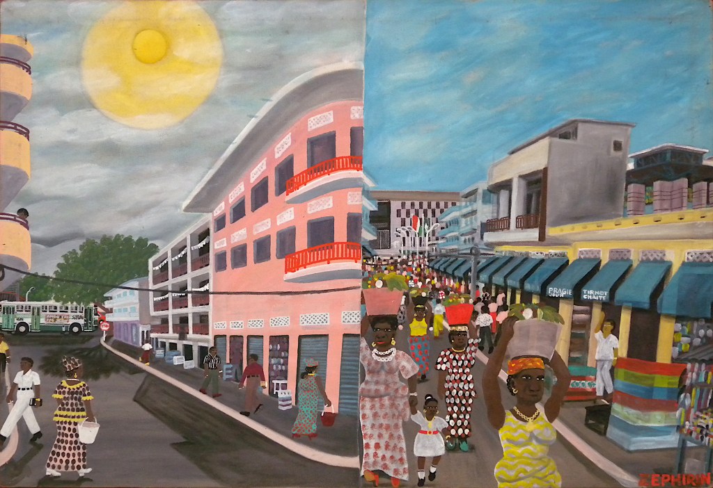 signée en bas à droite Zephirin titré au dos: Marché Treichville 49 x 70 cm