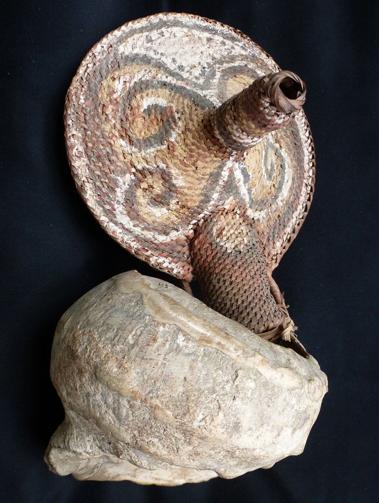 Je suis né dans un pays lointain… à la base, simple gastéropode marin, les hommes m’ont affublé d’une belle figure de vannerie. Je ne m’en plains pas car je suis devenu un objet précieux qui, selon eux, est bien vivant…