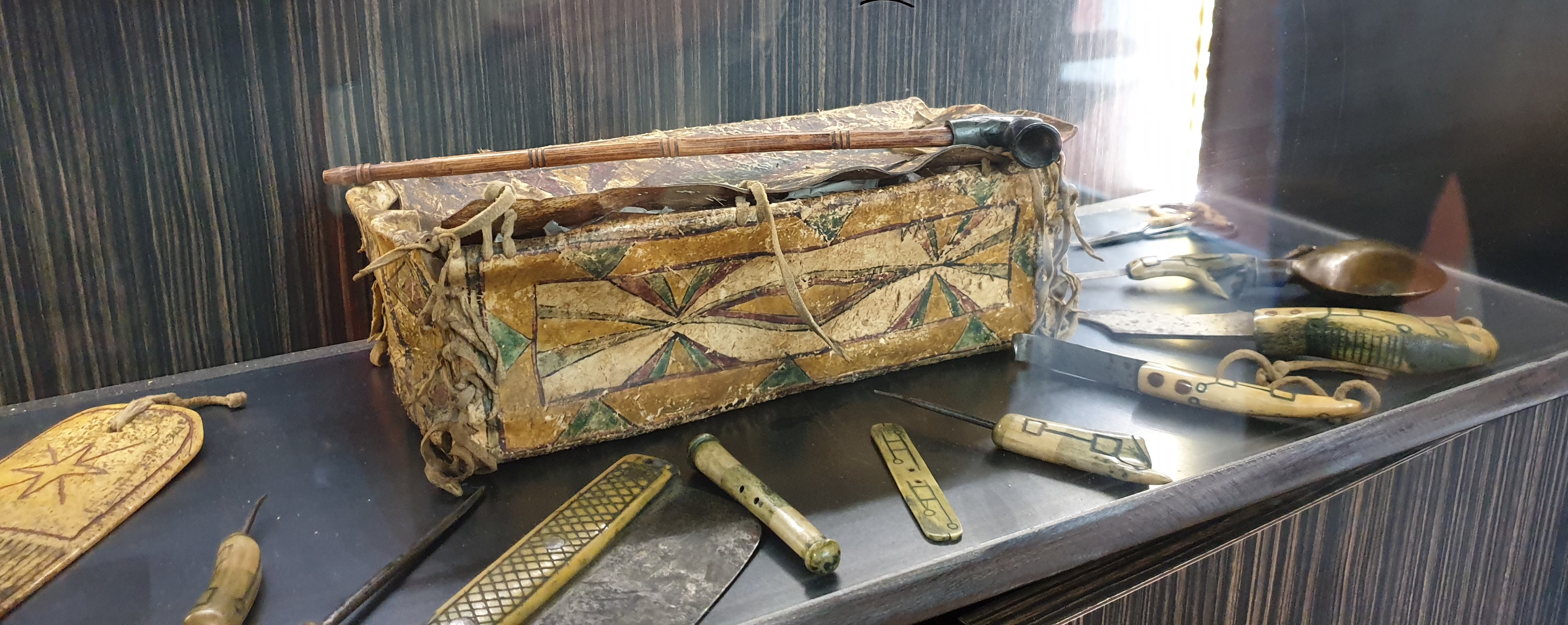 Kayak, harpons, vêtements et coiffes indiens, plusieurs porte-bébés de différentes tribus, poupées kachina, de nombreux outils bien documentés et mis en scène animent les différents bureaux de cet espace de travail. Ce fut plus qu’une mise en bouche pour la visite des Confluences, un superbe moment, un grand merci à Dominique Arcadio.