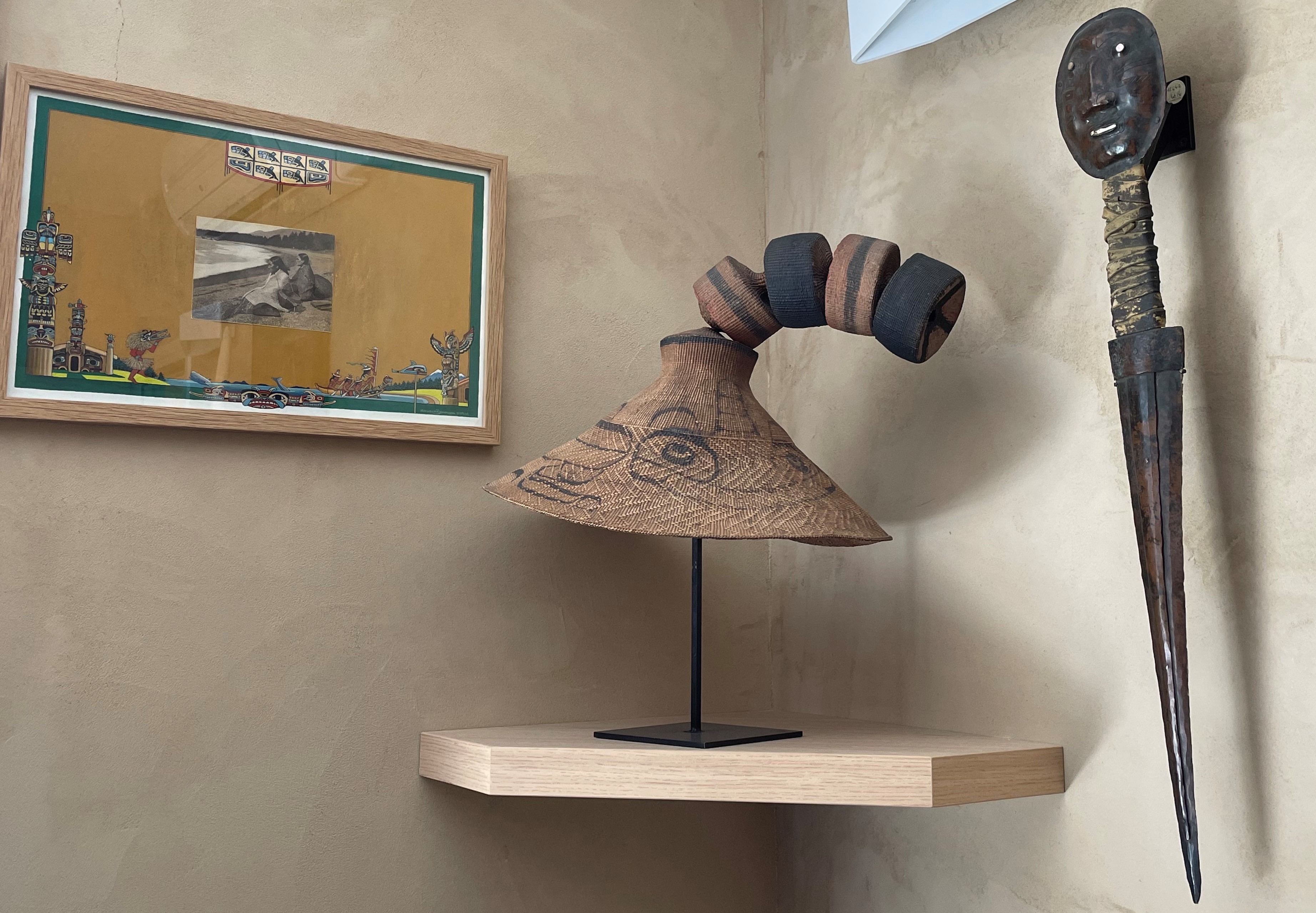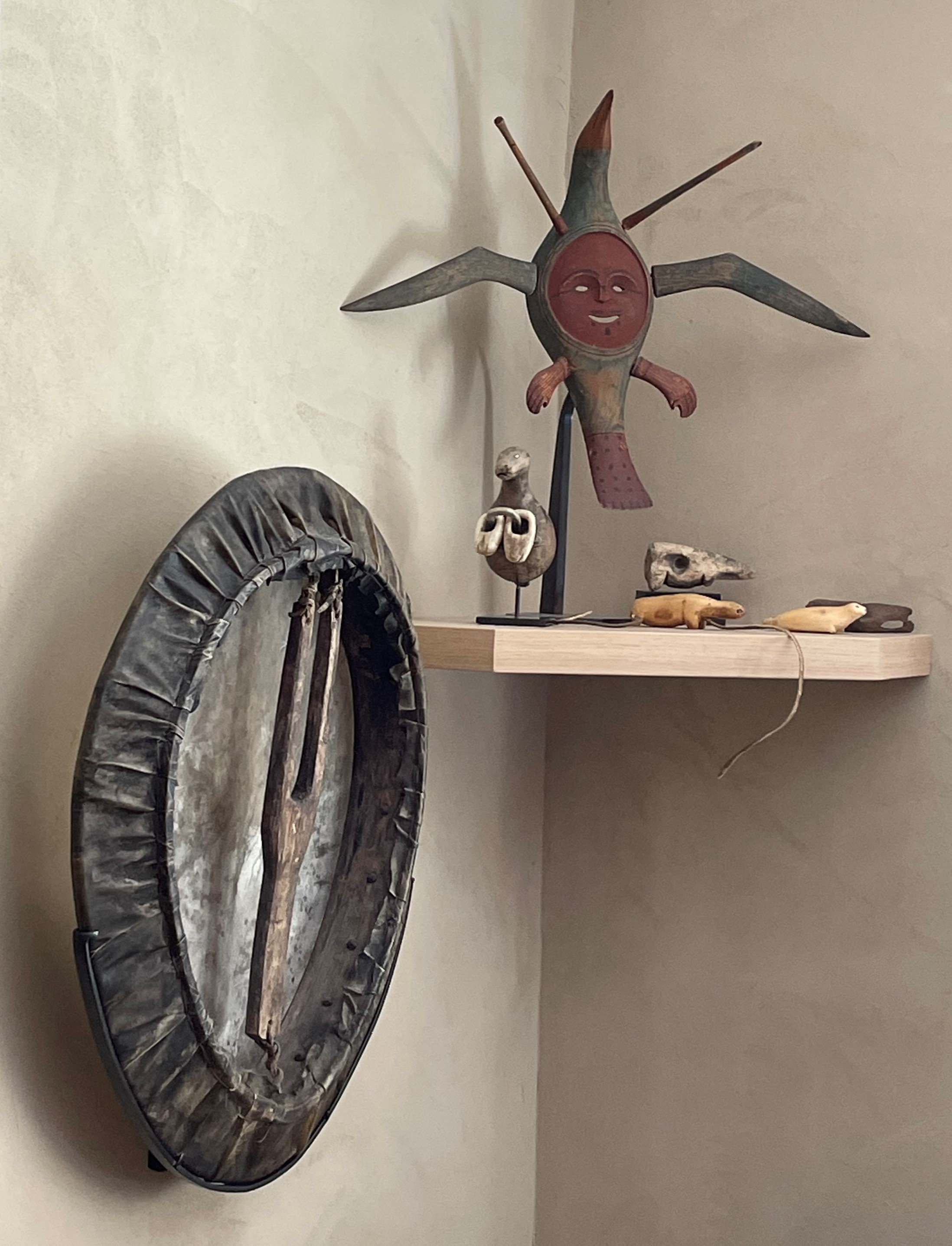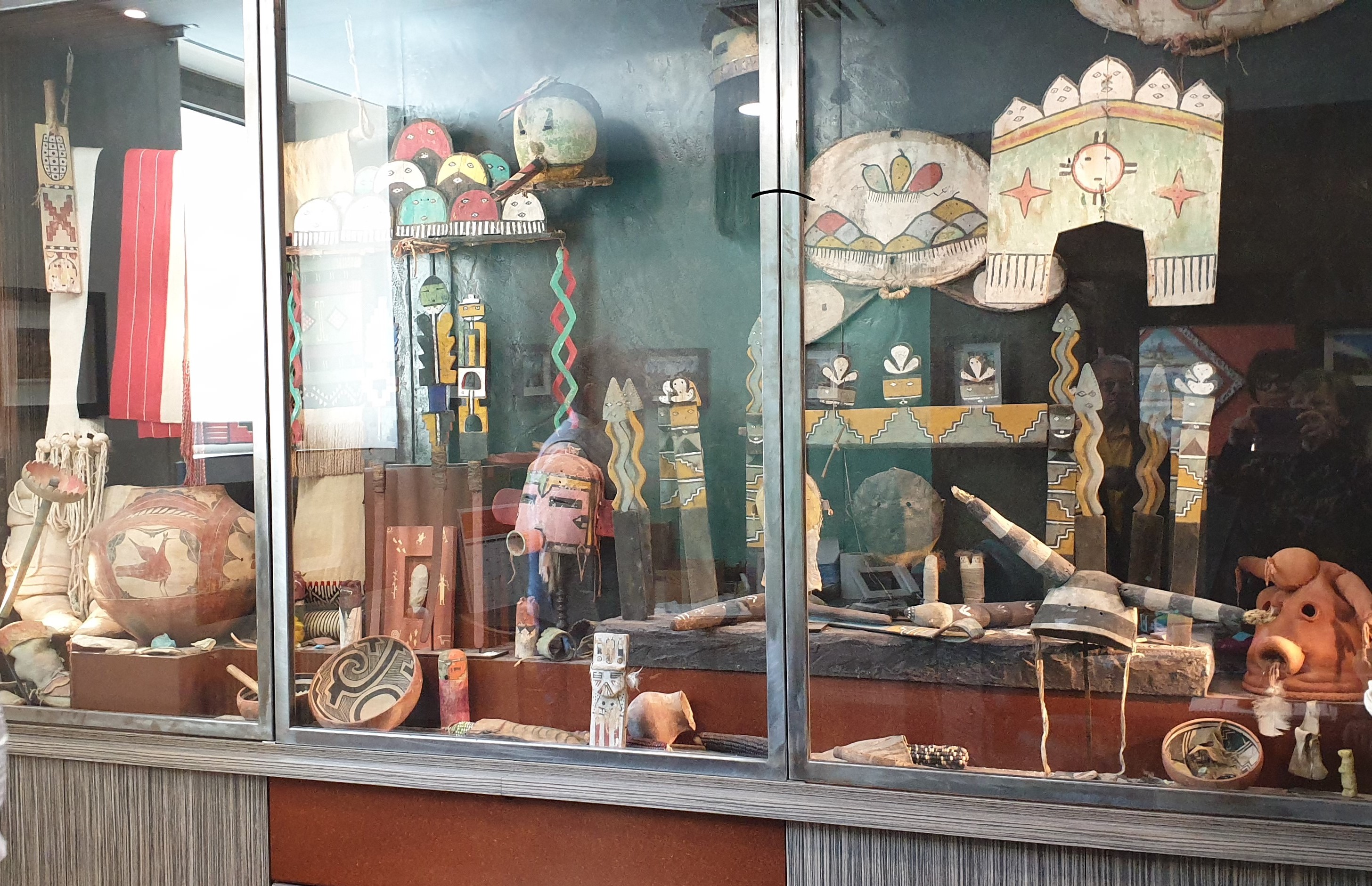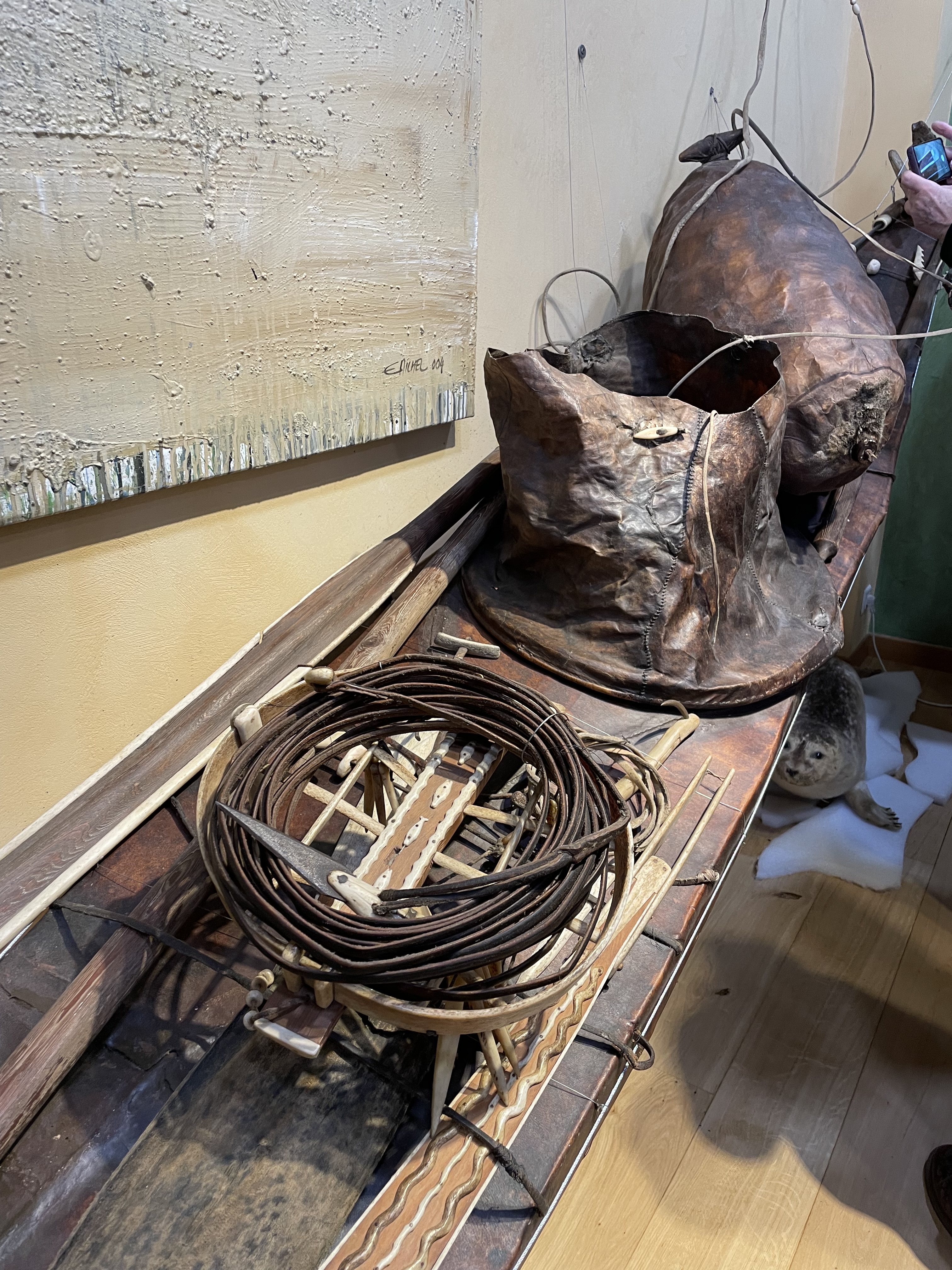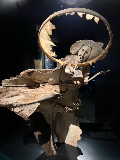 Nous fûmes d’entrée accueillis par un kayak inuit complet avec tout son équipement pour la chasse et la pêche, sous lui un jeune phoque naturalisé rend la scène encore plus vivante…Sur trois niveaux, les arts de l’Amérique du Nord sont représentés et exposés avec goût et intelligence. Des Inuits au nord, aux indiens Hopi, Pueblo et Apaches au sud-ouest, en passant par la côte Nord-Ouest pour arriver dans les Grandes Plaines, le survol de l’Amérique du nord est complet.