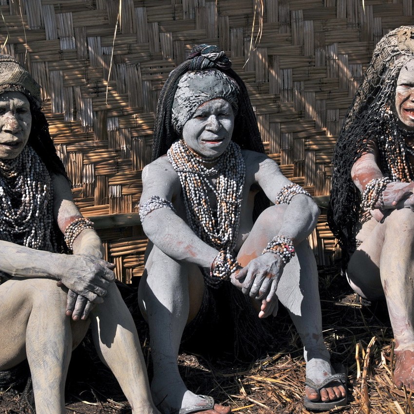 La société papoue a été construite par les hommes et elle reste dominée sans partage par eux. Le statut des femmes est particulièrement dévalorisé. Elles sont là pour faire des enfants, cultiver et entretenir le jardin, récolter les fruits et les légumes. Les hommes sont soucieux de leur apparence. Ils peuvent passer des heures à soigner leur maquillage et apprêter leur coiffe mais les femmes n’ont, sauf exception ni bijoux ni vêtements qui les mettraient en valeur et elles ont peut-être trop à faire avec l’élevage des enfants…et des cochons.