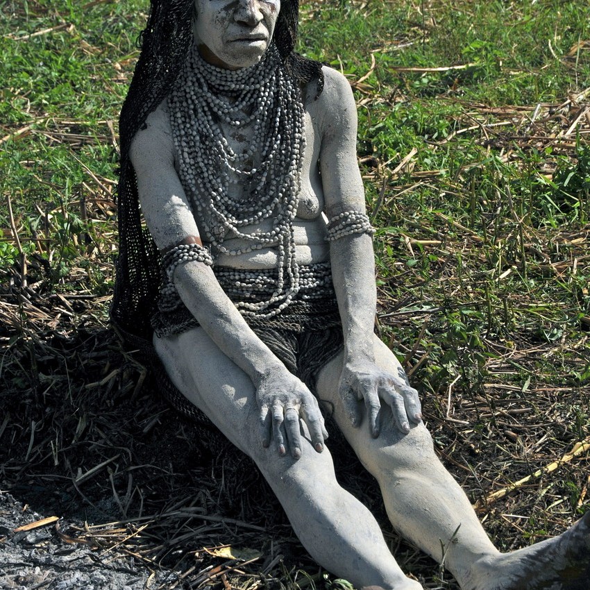 Comment comprendre cet assujettissement, cette mise en scène de la douleur à l’occasion d’un show festif sinon peut être encore par une glorification de l’homme ? Comment comprendre aussi, alors qu’en Papouasie la couleur blanche est associée à la mort et au deuil, que d’autres veuves se couvrent le corps d’un onguent à base d’huile de palme et de charbon de bois ?