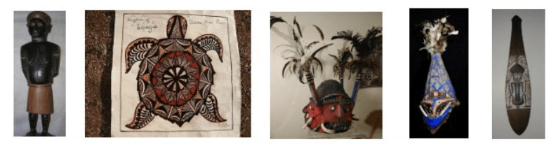 Objets et photographies issus des collections du musée du quai Branly – Jacques Chirac ; Art (tembe), peinture et photographie contemporaines, textiles. Iconographie.