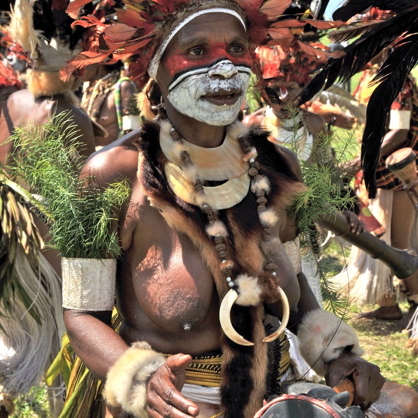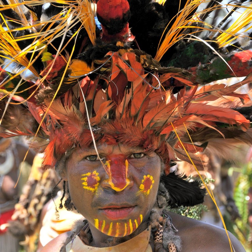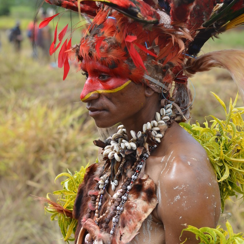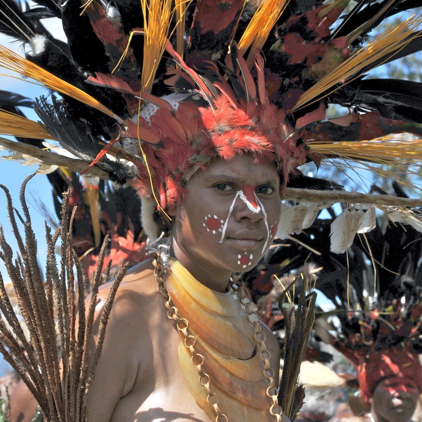 Christian Travers nous emmène dans les Hautes Terres de la Nouvelle-Guinée chez les Simbu qui soignent particulièrement leurs parures de plumes.