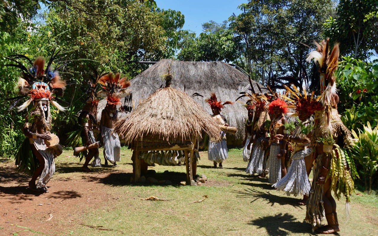 Goï koï est un village des hauts plateaux près de la ville de Jiwara dans la région de Minj qui est peu éloignée de la ville de Mount Hagen. C’est là que vit la petite ethnie Kon-Buka. Nous y avons été très chaleureusement accueillis et nous avons pu y assister à des danses. Rituellement celles-ci marquent la reconnaissance quand l’année écoulée s’est bien passée et c’est également l’occasion de se manifester pour obtenir bonne fortune pour l’année suivante : Bonnes récoltes, bonne santé pour tous, naissances…
