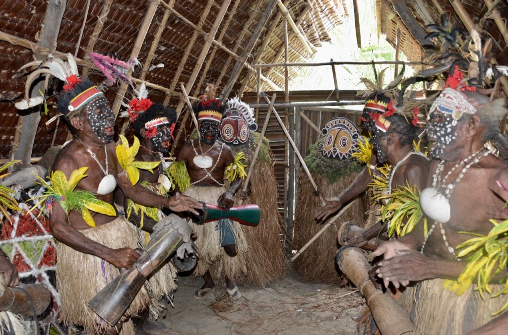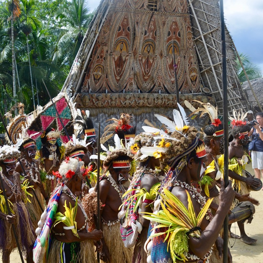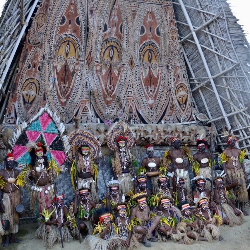 Apangaï est situé sur les contreforts de monts Prince Alexander près de Maprik. La Maison des Esprits, appelée chez les abelam Karambo y est particulièrement belle avec un pignon de 25 m de hauteur sculpté et peint. Les danses qui nous ont été offertes à l’intérieur et sur la belle place située devant étaient très intéressantes.