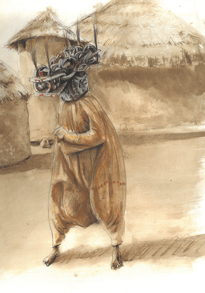 « Cette exposition a été conçue sur la base des travaux de l’ethnologue Marie Lorillard et des données fournies par ses deux principaux informateurs (Kiali Soro, artisan et initié du Poro, originaire du village de Fonikaha dans le nord de la Côte d’Ivoire et Jean-Claude Faboly Djamouténé, également initié du Poro et linguiste malien). »