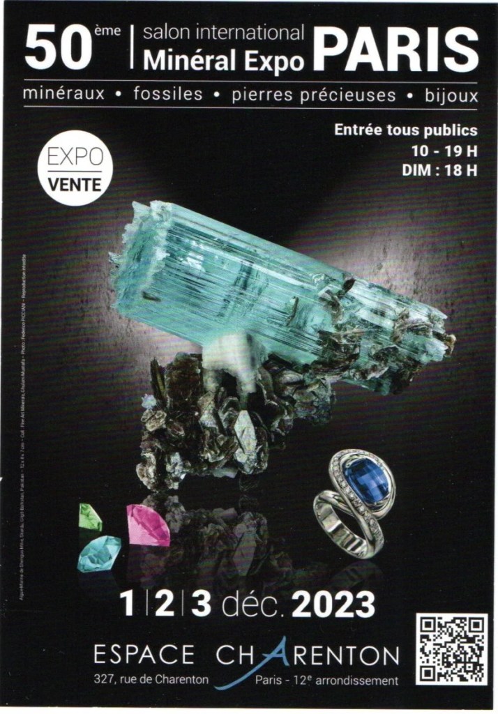les 1er, 2 et 3 décembre, 50ème édition du Salon des Minéraux à l’Espace Charenton, 327 rue de Charenton 75012.