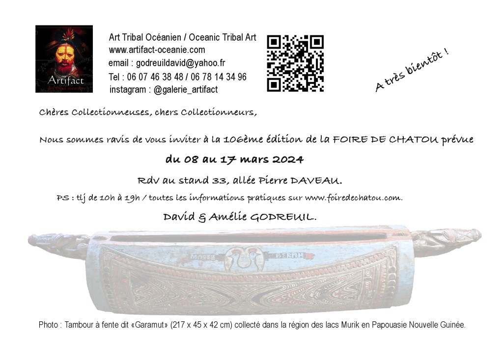 du 8 au 17 mars Foire de Chatou où Amélie et David Godreuil exposent et vendent leur collecte de Papouasie-Nouvelle-Guinée
