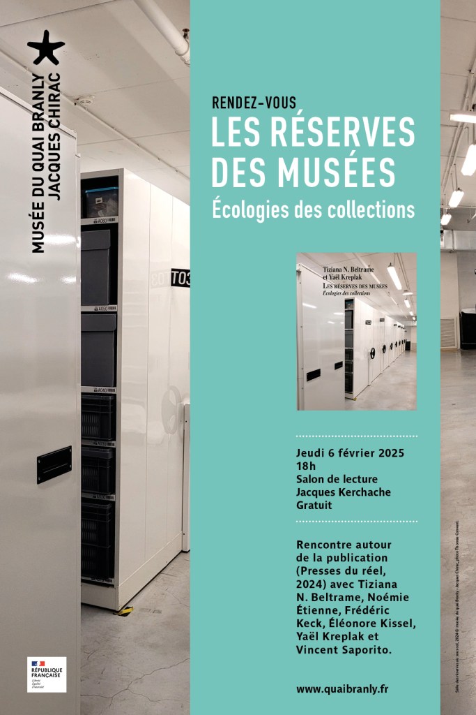 jeudi 6 février de 18h à 19h30 au salon J.Kerchache du musée Branly, « les Réserves des musées – Ecologie des collections », rencontre avec Tiziana.N. Beltrame, Noémie Etienne, Frédéric Keck, Eléonore Kissel, Yaël Kreplak, Vincent Saporito.