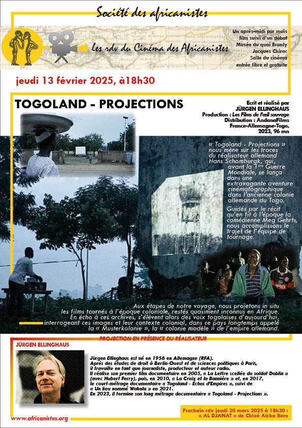 le jeudi 13 février 2025 à 18h30 en salle de cinéma du musée Branly, la Société des Africanistes propose « Togoland » réalisé par Jürgen Ellinghaus.