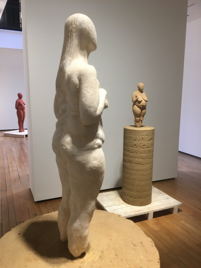 Née en 1985 à Paris, Prune Nourry vit et travaille à New York. Elle associe sculpture, installations, performances et vidéo. Elle s’intéresse à la science et à l’anthropologie, et plus particulièrement aux questions bioéthiques. Son exposition chez Templon, intitulée Vénus, poursuit ses recherches autour de la représentation de la femme, en lui donnant un élan féministe. L’exposition est le fruit d’une collaboration avec la Maison des femmes de Saint-Denis, et notamment huit femmes victimes de violence, à qui la sculpteure a proposé de les représenter nues, à la façon de Vénus préhistoriques. Des moulages de la Réunion des Musées Nationaux complète l’ensemble. Une belle reprise personnelle et contemporaine d’une représentation très ancienne et universelle, notamment de la fertilité.