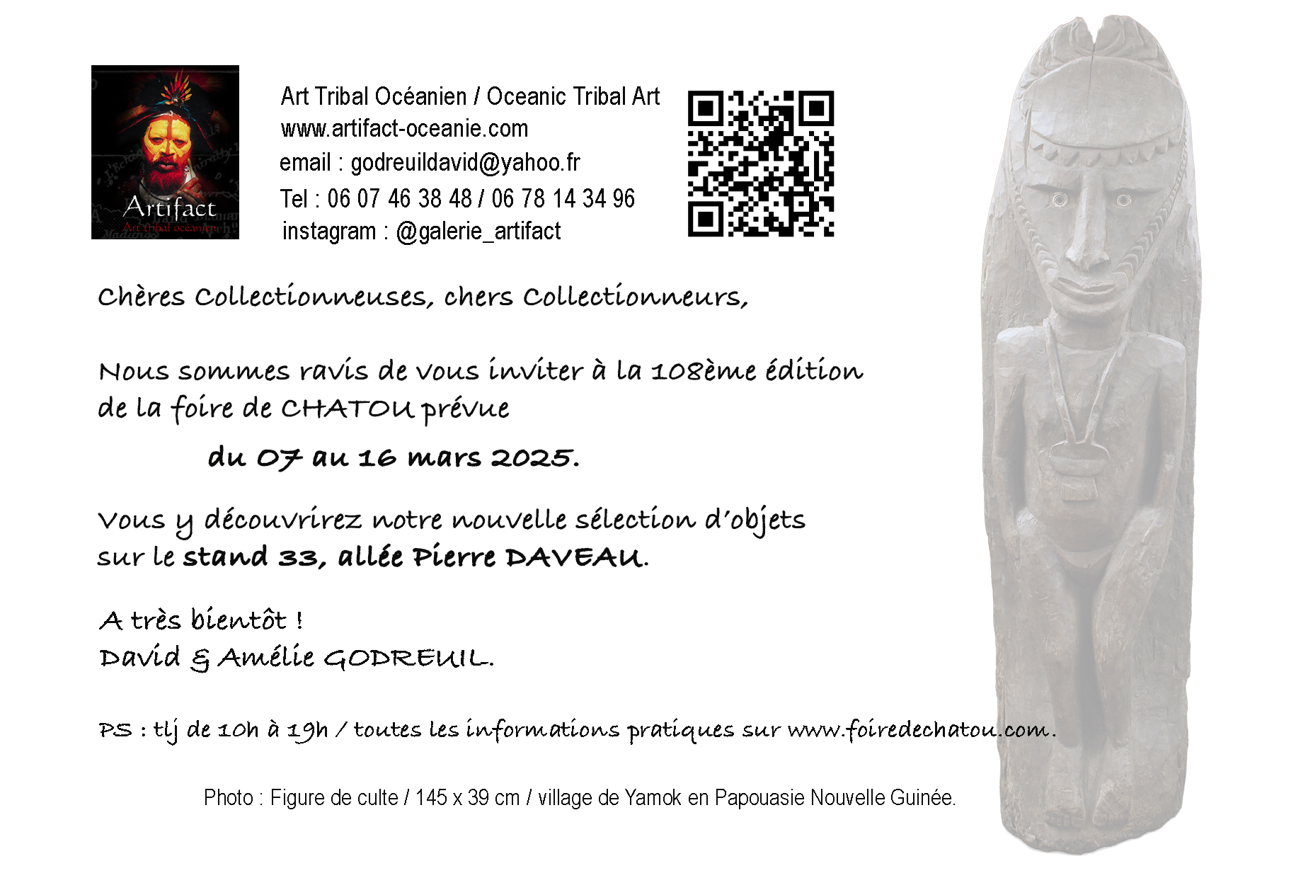 —du 7 au 16 mars, c’est la Foire de Chatou, où Amélie et David Godreuil, membres de notre association, nous proposent comme chaque année leurs objets de Nouvelle-Guinée.