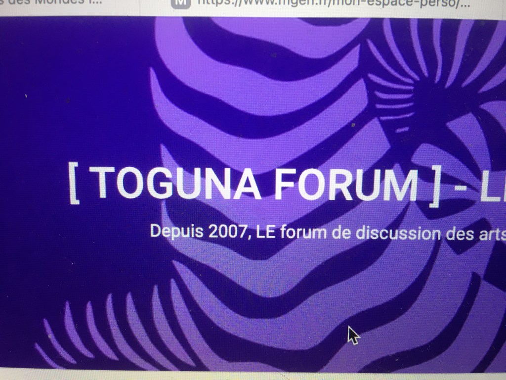 Le forum Toguna : se donne comme « Le » forum des arts tribaux du monde entier. Existe depuis 2007. Environ 1 500 membres. Consultation libre mais inscription nécessaire pour participer. Gratuit. Niveau des pièces inégal. On notera que le Forum est « sponsorisé » par le marchand Bruno Mignot.