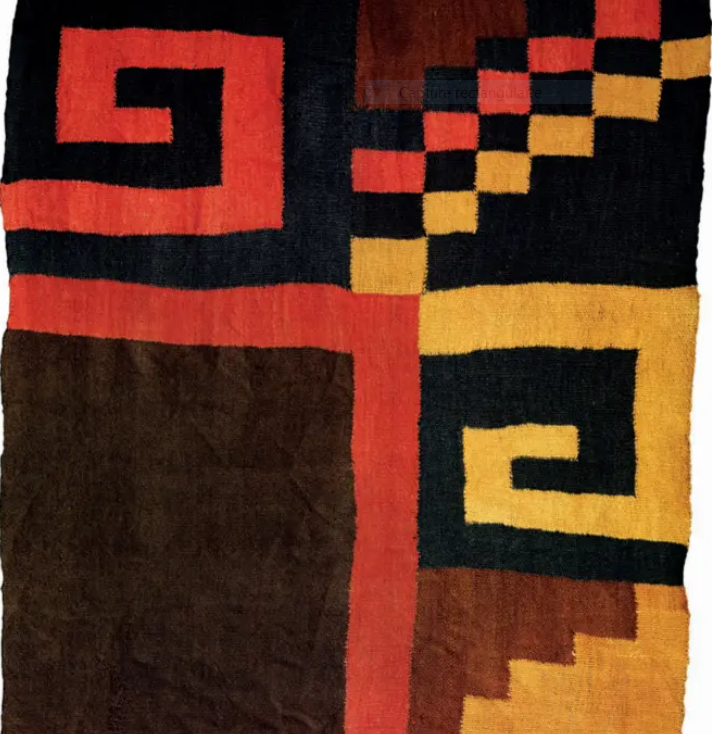ill.: fragment de textile Nazca, Perou, 200-600 ap JC et Sunday ceremony par Sheila Hicks 2001