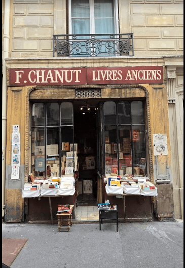 Nous restait, en face, au 41 rue Mazarine, une librairie de livres anciens, la Librairie Chanut, à la façade pittoresque, fermée par des grilles d’un autre temps. Elle est tenue par Madame Chanut parfois fatiguée par mes demandes réitérées de vieux recueils d’images de voyages du XIXè siècle dans les Mers du Sud…mais elle en a trouvé!