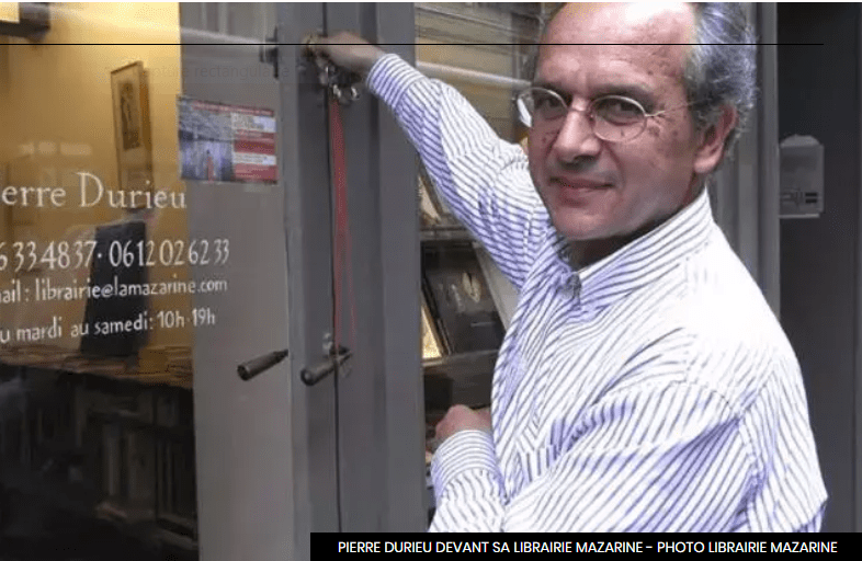 Nous nous sommes rabattus sur la librairie Mazarine au 78 rue Mazarine, tenue par Pierre Durieu, qui proposait bien sûr toutes les dernières parutions mais aussi quelques occasions historiques bien onéreuses. Mais pas la même sensation de librairie ancienne.