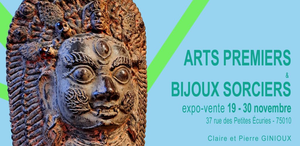 du 19 au 30 novembre, exposition-vente Arts Premiers & Bijoux sorciers proposée par Claire et Pierre Ginioux, membres de notre association.