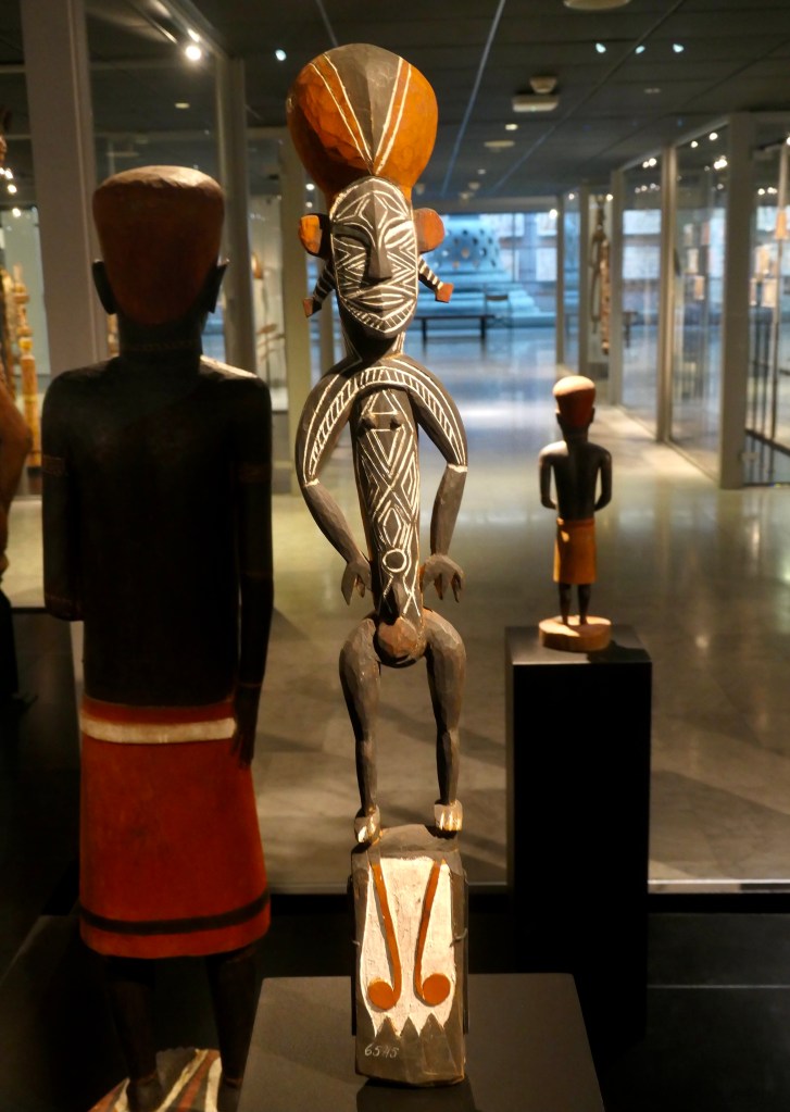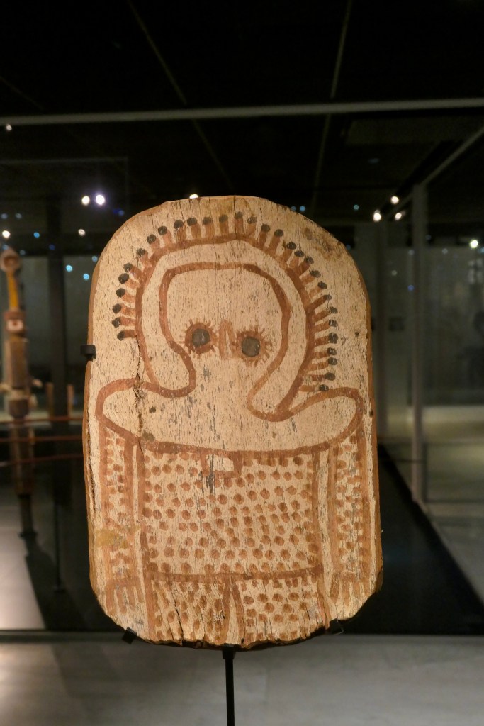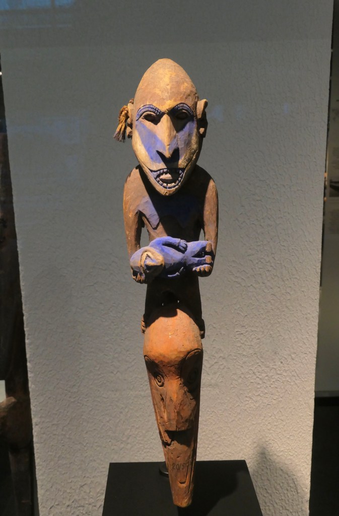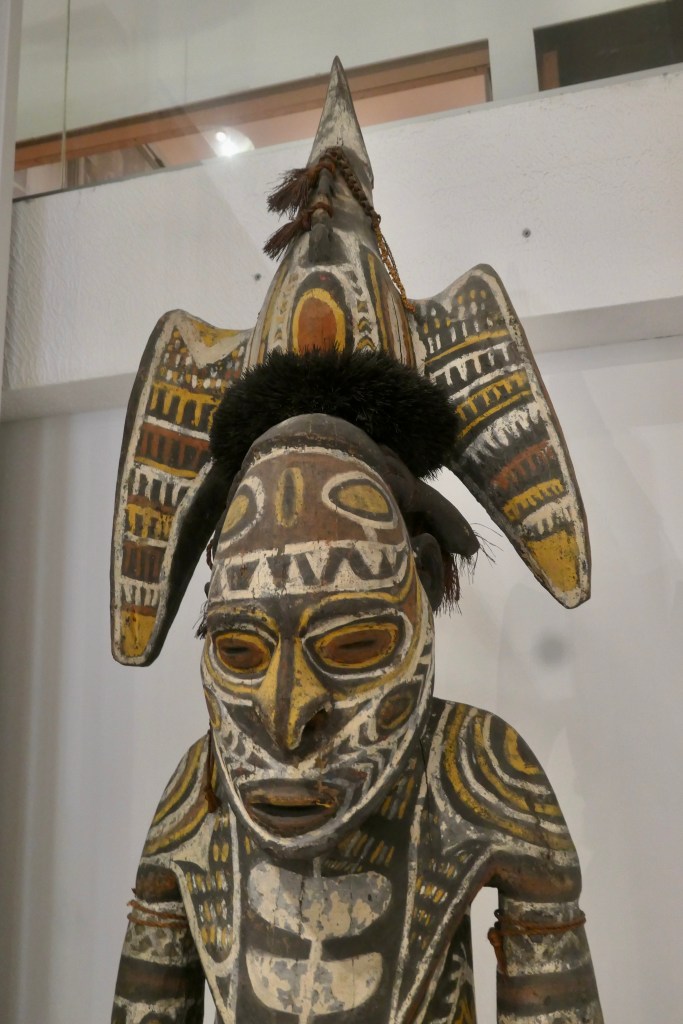 Lors de notre visite, les espaces Afrique et Amérique du Nord étaient fermés sans aucun préavis – très probablement pour un problème de gardiennage. Les vastes vitrines sont plutôt « civilisationnelles » et n’entrent guère dans les détails – si certaines pièces sont très commentées, d’autres sont dépourvues de cartels -. « L’art chrétien indigène », pour reprendre la formule utilisée par le Musée, fait l’objet d’un traitement particulier, mais qui reste raisonnable. On rapproche sans doute un peu rapidement toute statue de maternité d’une Vierge à l’enfant. Enfin, on ne s’attarde pas toujours sur les circonstances et les modalités de collecte… On notera tout de même que le Vatican a procédé récemment à une restitution au Canada d’une soixantaine d’objets « autochtones » – masques traditionnels , canoë inuit… considérés comme sacrés.