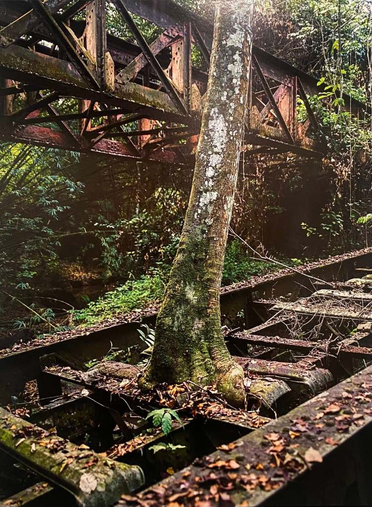 La ligne a été construite durant la colonisation française dans le but d’extraire les richesses naturelles du pays afin de les acheminer vers le port d’Abidjan, puis la métropole. Les photographies de Gbré sont chargées d’une forme d’historicité latente constituée de multiples strates temporelles superposées : la période coloniale, les années qui ont suivi l’Indépendance et les évènements plus récents.