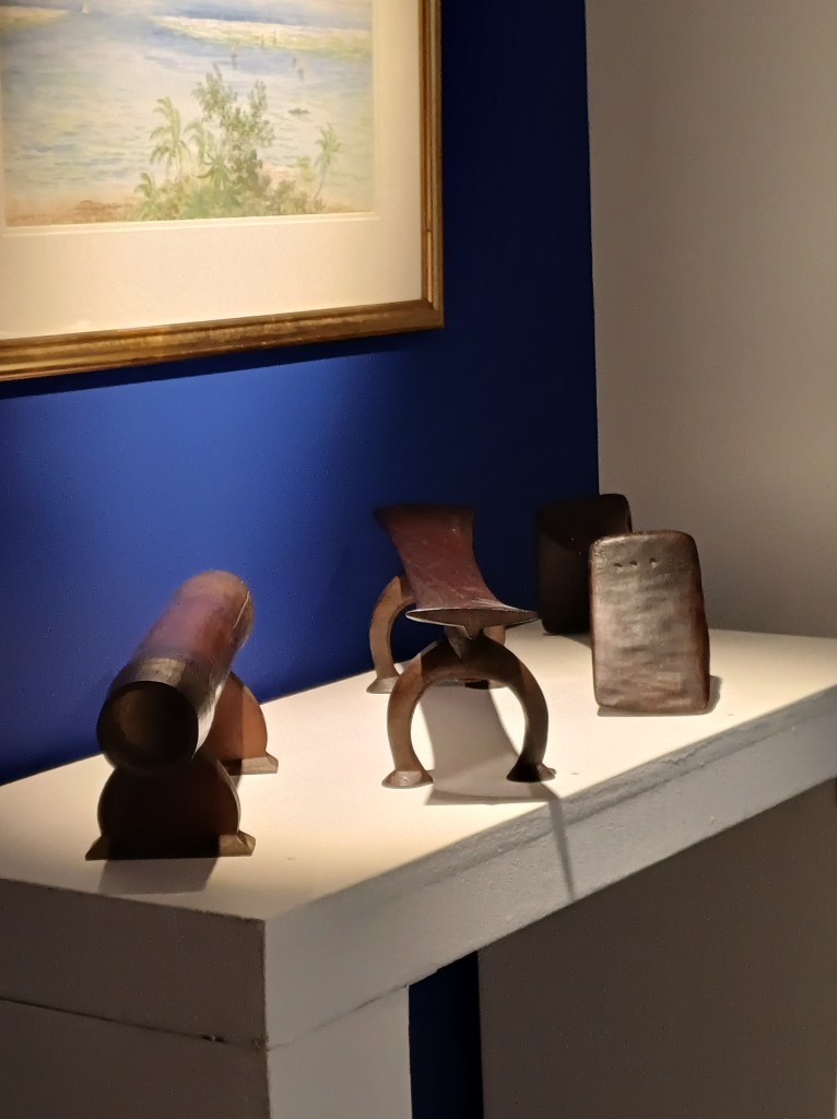 Une quarantaine d’objets fidjiens sont proposés à notre admiration devant le superbe fond bleu de la galerie jusqu’au 30 avril 2026.