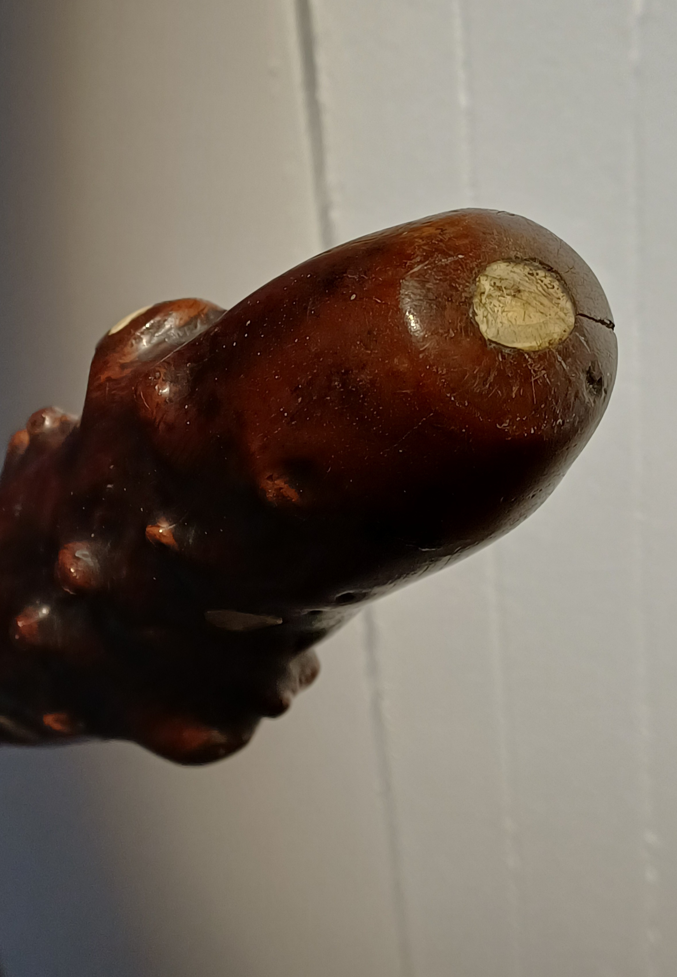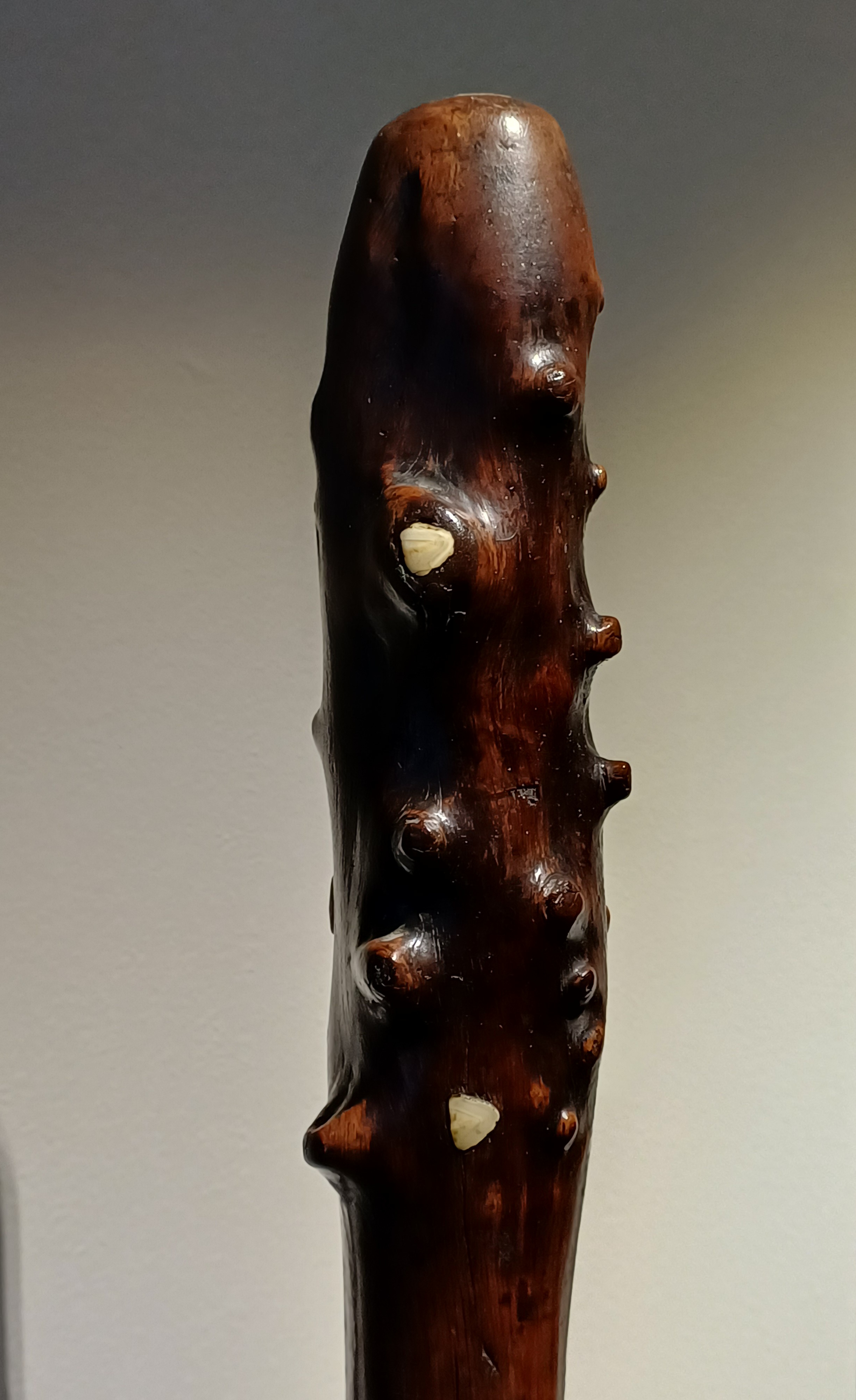 A nouveau une massue à racines en bois très dur casuarina equisetifolia avec des incrustations de dents humaines :